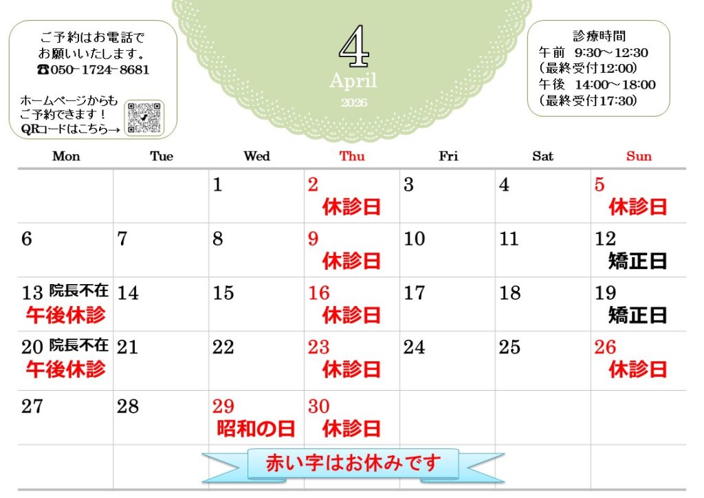 4月休診日のお知らせです。