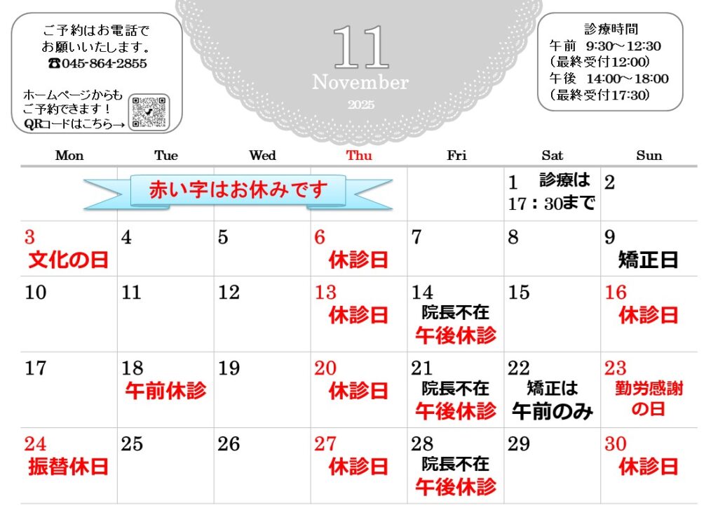11月休診日のお知らせです